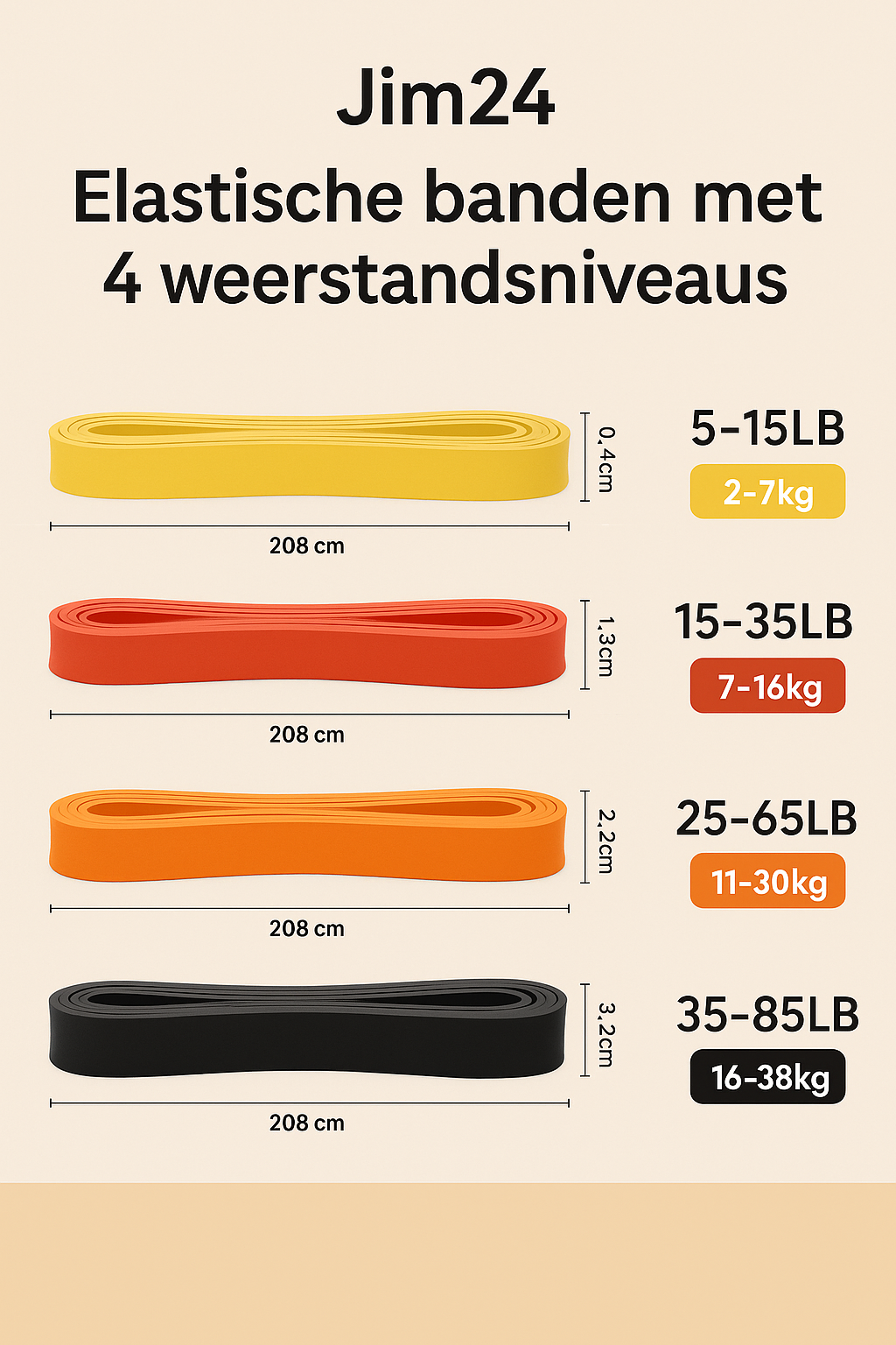 De set van 4 weerstandsbanden biedt variatie in intensiteit voor je trainingen. Ze helpen bij het versterken van spieren, verbeteren van flexibiliteit en zijn ideaal voor zowel beginners als gevorderden om hun workout naar een hoger niveau te tillen.